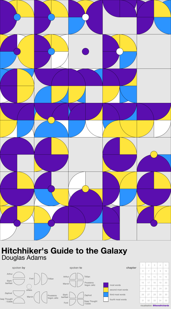 Here’s a visualisation I completed recently on the Hitchhiker’s Guide to the Galaxy.
