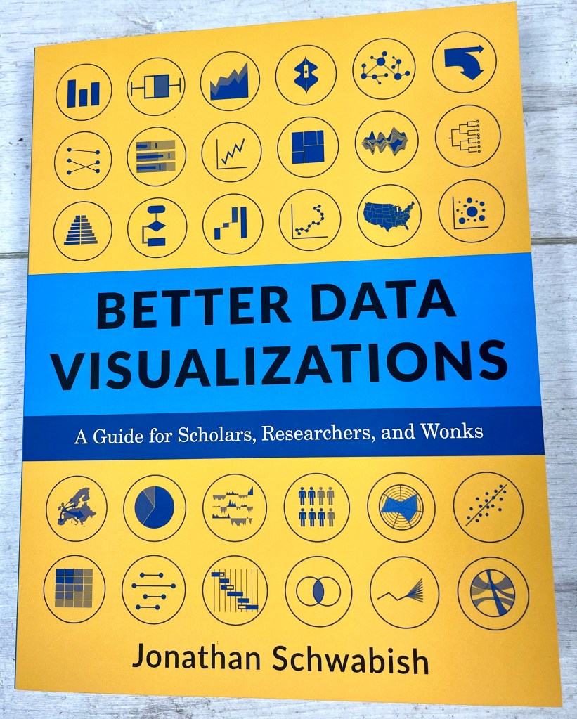 This question might be a pretty broad subject, and a pretty ambitious one to answer. But in fact, the answer is simple – you read “Better Data Visualizations” by Jonathan Schwabish. This post is a review of that book – recently released with the subtitle: “A Guide for Scholars, Researchers and Wonks”, continuing my series of book reviews throughout 2021.