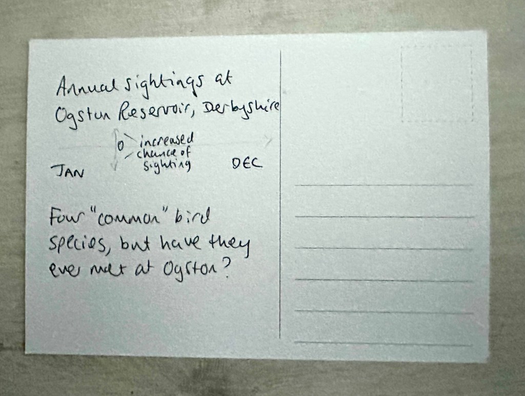 I decided also on the recipient of the postcard – my father would appreciate this, as a fan of data and birds. A fun way (I hope) to engage with a new thing that his son is getting interested in and involved with, and a surprise thing to drop through the letterbox from the distance of the country away.